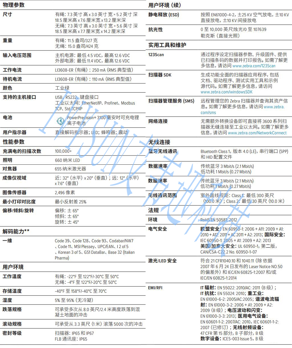 斑馬zebra 有繩LI3608-ER掃描器性能特點