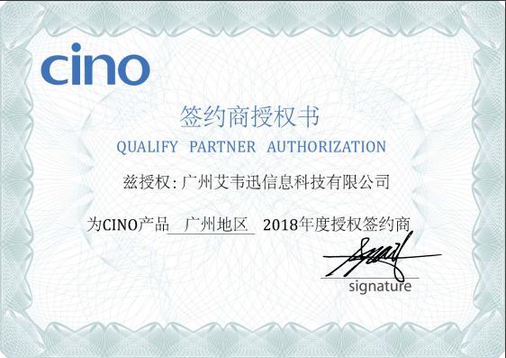 艾韋迅科技專注為工商業提供優質的掃碼產品和增值服務,憑借過硬的技術服務能力和良不不市場口碑,再獲臺灣老牌條碼掃描設備廠商CINO的2018年代理資格授權書。